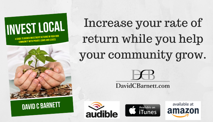 Invest Local is a peek into the experience of local deal-making expert David Barnett. His experience and education in business brokerage, small business financing and private finance deals gives him an insight into what's wrong with the common financial planning advice available today and how you can make higher investment returns while reducing risk and helping your local community.